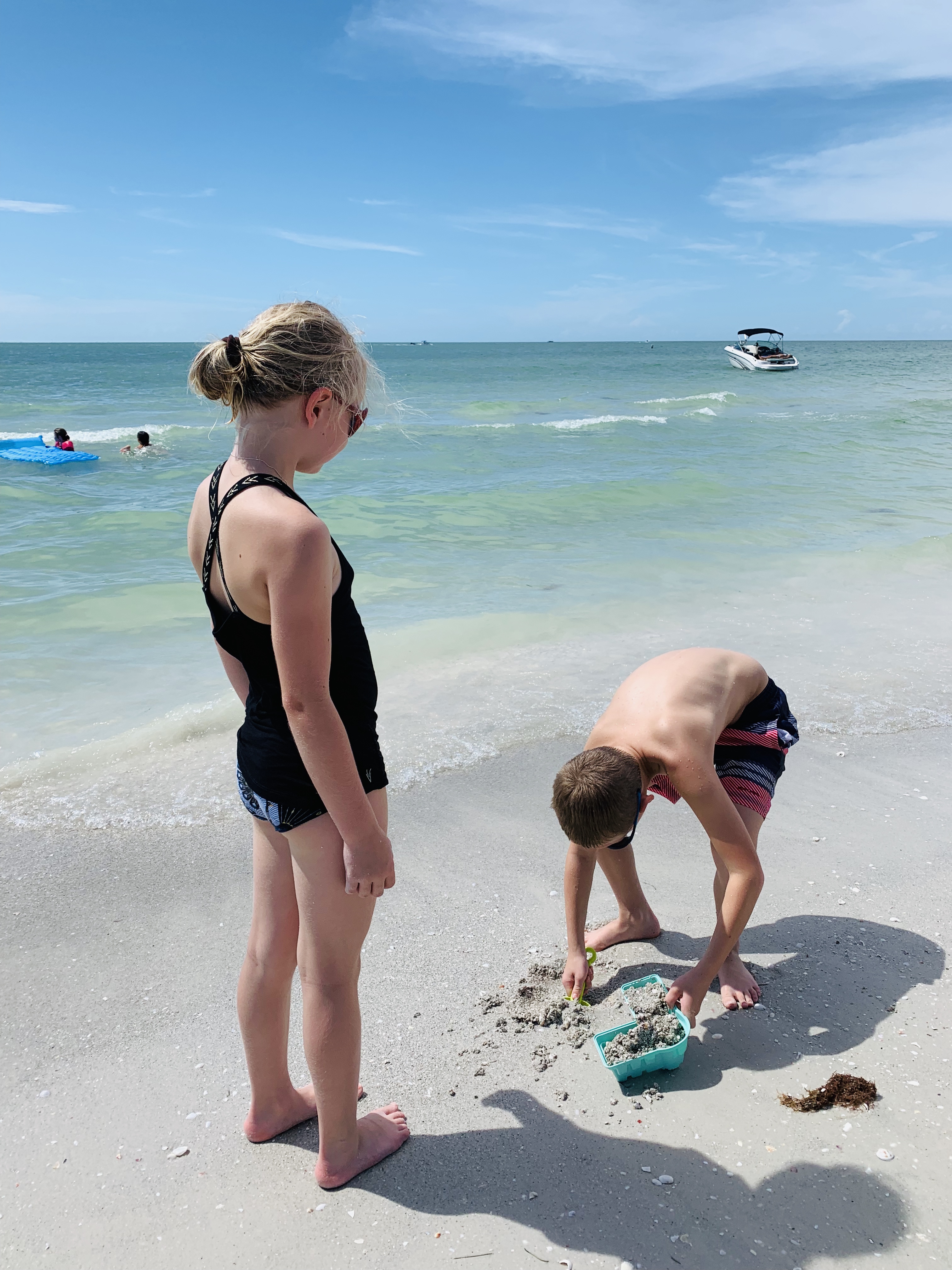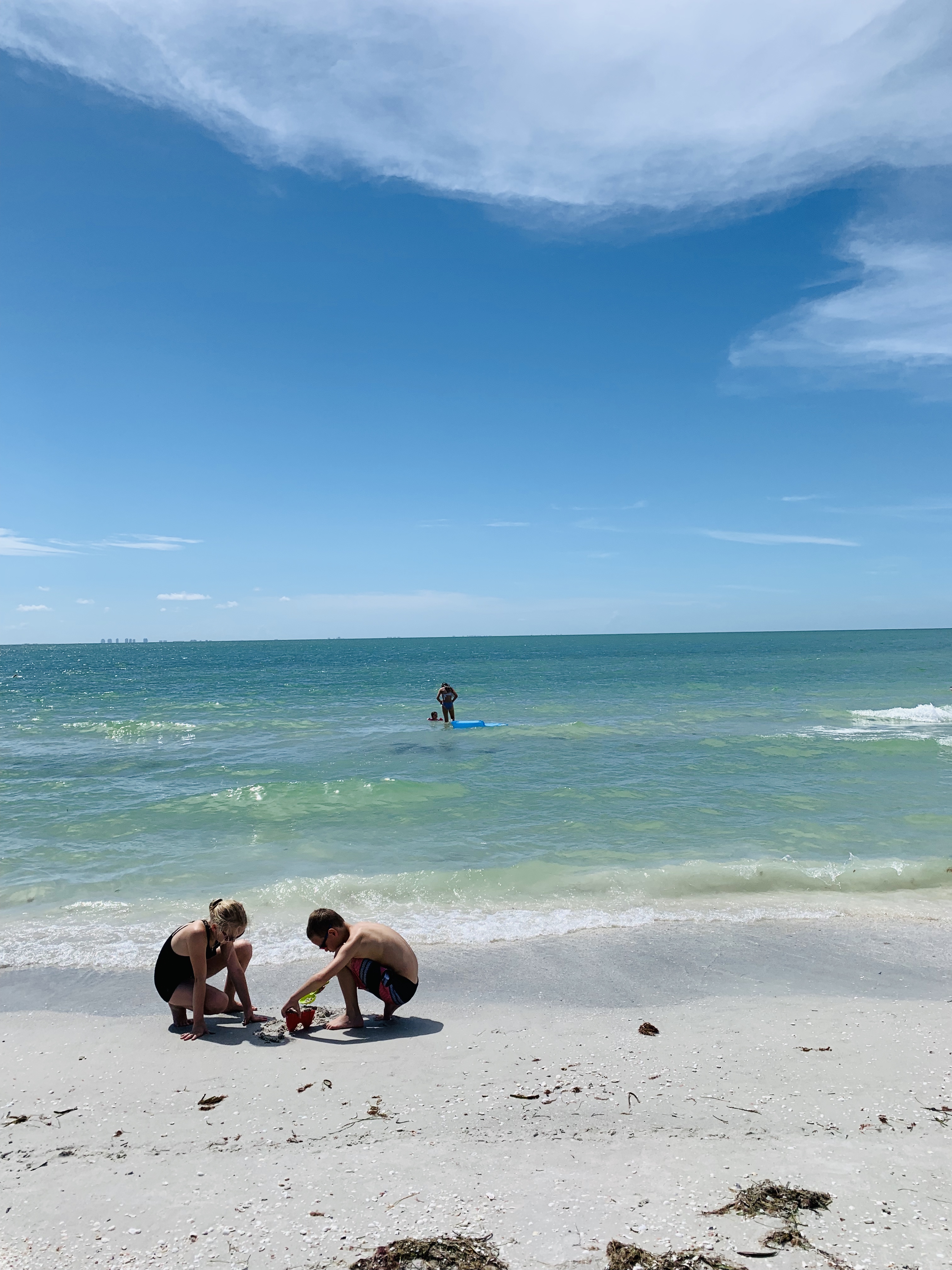Er liggen veel schelpen op het strand, maar we vinden niet echt hele mooie. Ik blijk echt een oog te hebben voor de kattenpootjes want die blijf ik maar vinden. Ze zijn echt mijn favoriet dus ik neem ze allemaal mee.