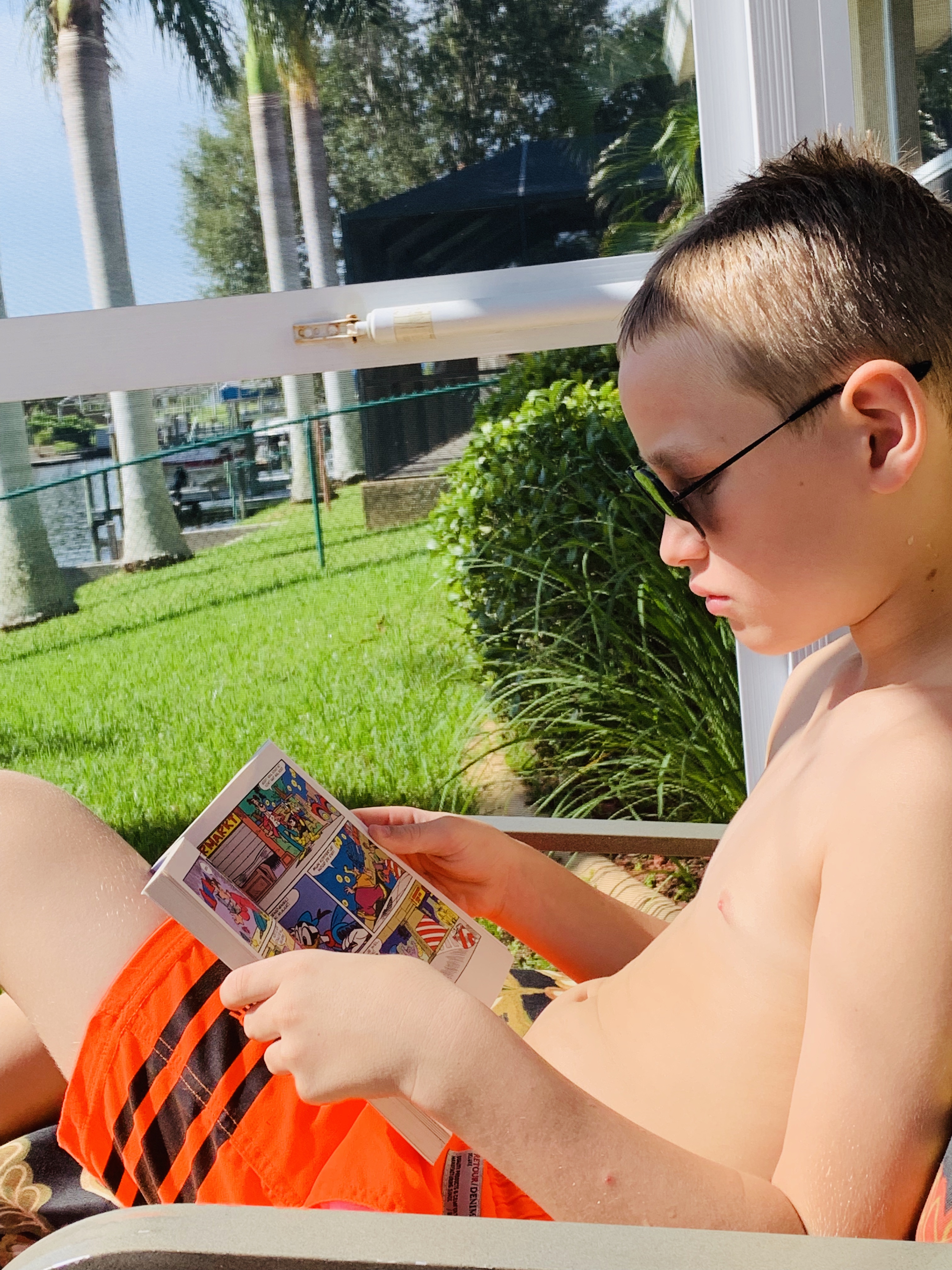 Coco ligt al op ons bed naar YouTube filmpjes te kijken en Mika helpt mij even met het afknippen van de prijskaartjes uit de nieuwe kleding. Kan ik het hier alvast wassen, scheelt thuis weer. Lig ik in de zon als de was draait, hoe easy is dat!